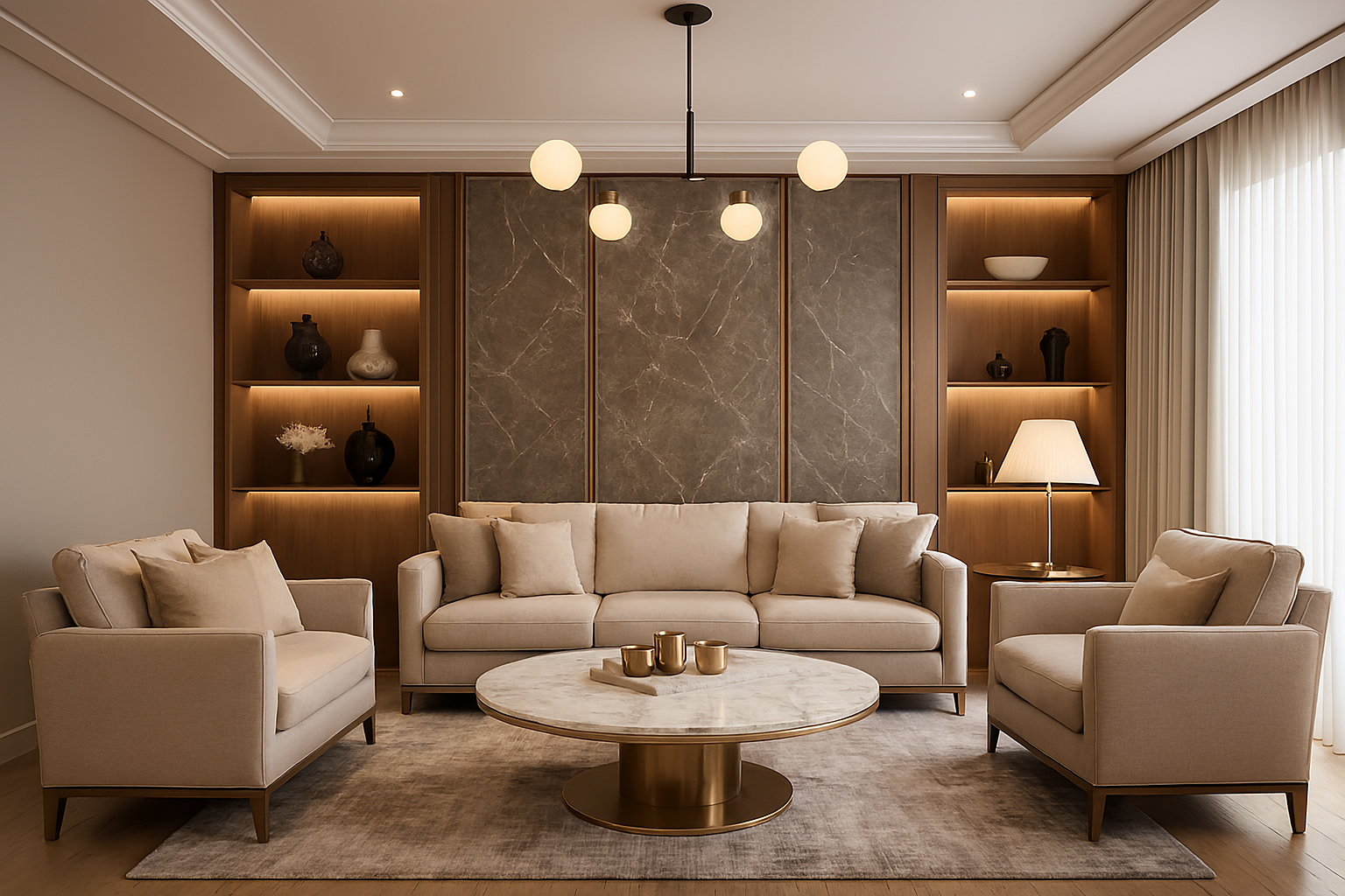 Curated high-end materials, finishes, and custom furniture crafted for exclusivity and elegance.